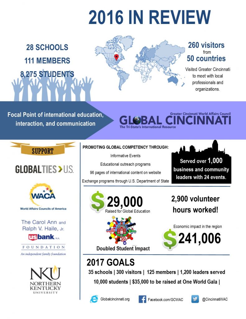 Congratulations to the Academic WorldQuest winning team: Indian Hill High School. The school has been the three-time reigning champions of the competition. They’ll be headed to Washington D.C. to compete in the national competition and the team will be at the Council’s One World Gala & Global Trivia Competition. The students and teachers will be returning to the gala and are hoping to defend their title as the One World Gala champions and to prove once again their global wits against the community and business members!